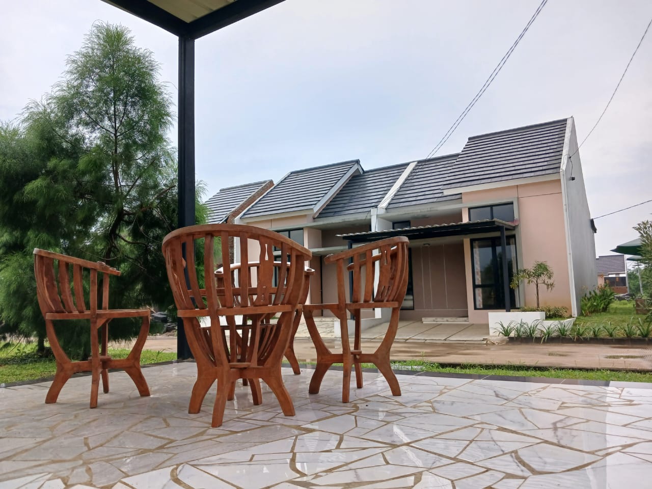 | Atap | Baja ringan + Genteng flat beton |